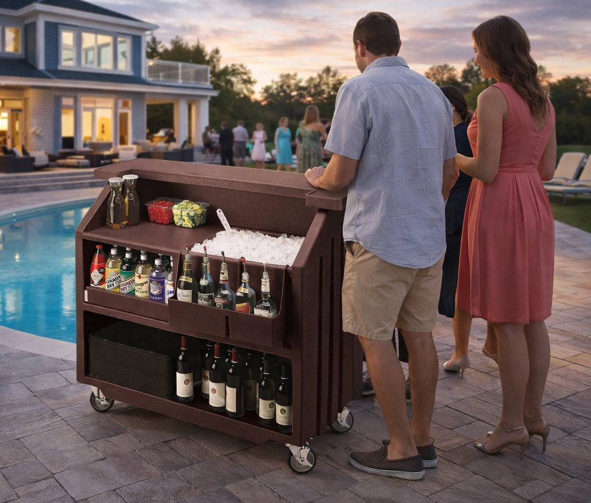 Elevate your next event with our rolling portable bar, complete bar accessory kit, cocktail tables, and coolers. Mobile bar delivers professional service anywhere; accessory kit includes shaker, jiggers, strainers, and tools; cocktail tables create stylish gathering spots; high-capacity coolers keep drinks perfectly chilled. Durable, easy to set up, and designed for seamless service—perfect for weddings, corporate events, and private parties. Rent A Tent makes hosting effortless and memorable.